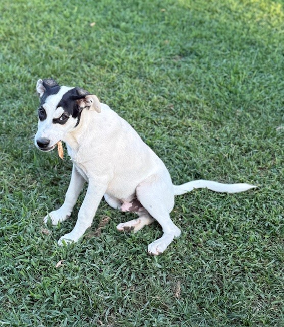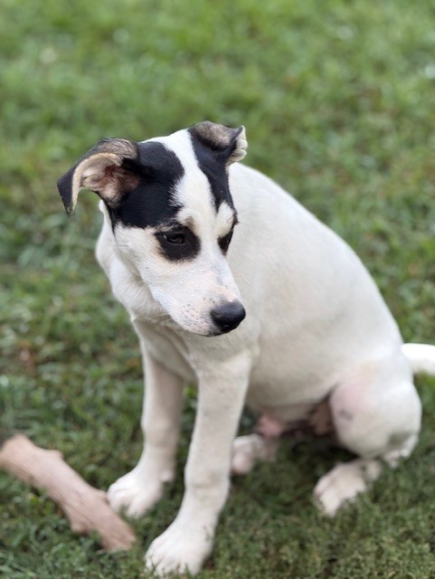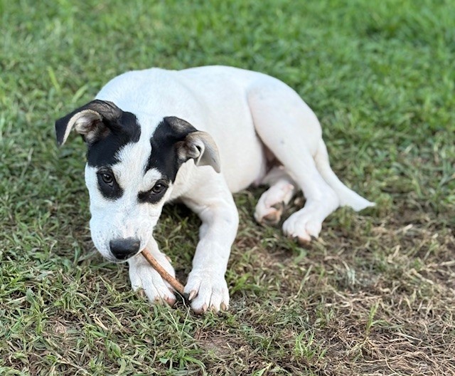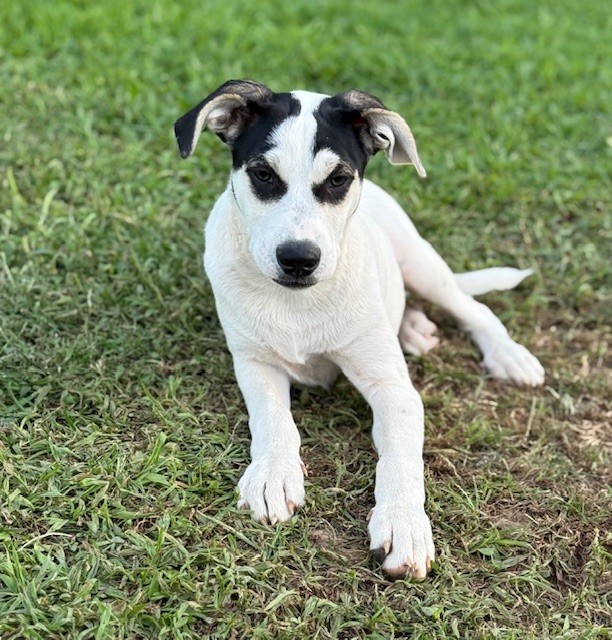 Born on April 10th, this adorable little guy is a 5 month old male puppy and ready to steal your heart! Alfie is a fun-loving, playful pup with a sweet personality and a curious spirit. He’s a mixed breed who will grow to be a medium-sized dog—just the right size for couch snuggles and backyard zoomies! He's super social and requires pets and gives kisses to EVERYONE he meets!!! Requirement-must LOVE kisses!