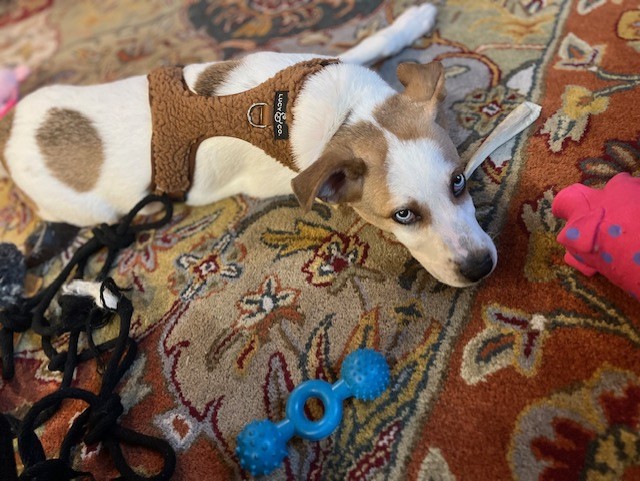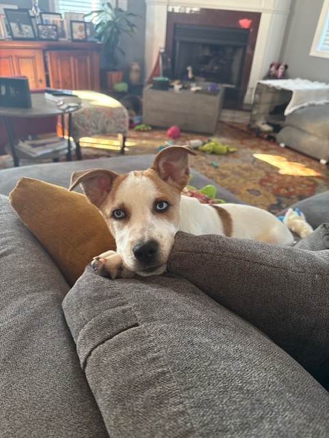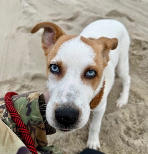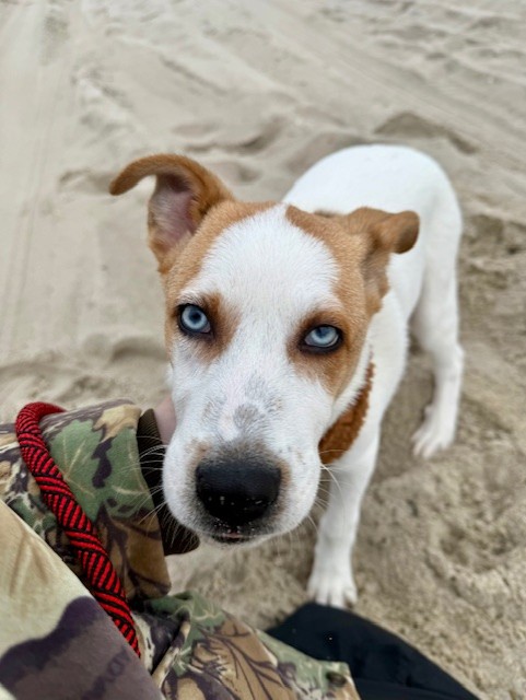This 4-month-old Husky/Hound mix (best guess) has a refreshing perspective on life, treating every new experience as the best day ever. One moment, he's charging across the beach with boundless energy; the next, he's peacefully listening to the birds chirp in the yard. After a day of excitement, he's a happy snuggler who loves to crash on the couch or relax in his crate near his people.